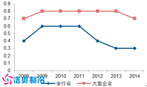 2010-2014 年,企业总资产周转总体下滑。同时,过高的总资产导致行业总体 ROE 偏低,虽然国家出台多项政策支持、政府补贴和出售资产等营业外收入使得国有大型仓储企业 ROE 改善,但是企业经营仍然处于困境,2014年大型仓储的主营营业收入处于-28%的增长率。