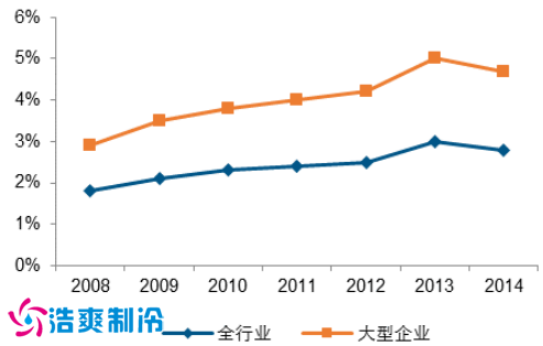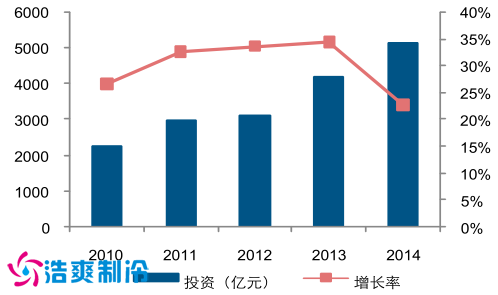 从物流费用的构成来看,2014 年尽管交通运输费用占到物流总费用的 50%以上,但是与仓储行业相关的保管费用和管理费用比例占到物流总费用的 47%, 将近一半; 从固定资产的投资来看,物流业在仓储行业上的固定资产投资额逐年增加,2014 年达到 5159亿元,虽然 2014 年投资增长率有所下降,但是也可以达 22.8%,处于较高水平。