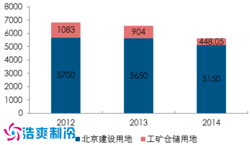 全国建设用地中工矿仓储用地占比持续减少,2015 年比例为负,这一特点在大型城市更加突出。以北京为例,北京市国有建设用地供应计划总量在近 3 年年的数量分别为 5700 万平米、5650 万平米以及 5150 万平米,而其中,工矿仓储用地分别则为 1100 万平米、900 万平米以及 450 万平米。也就是说,工矿仓储用地供应量占比在三年间从 19%,下降到 16%,直至 2014 年的 8.7%。