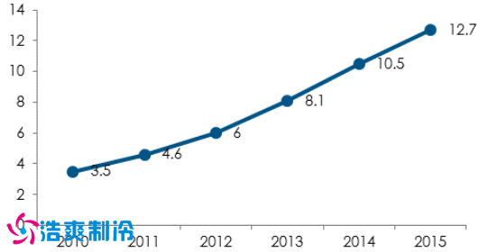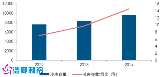 我国冷库的容量和增长率(万立方米)