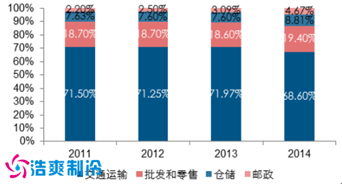 仓储业资产比例构成(2014)