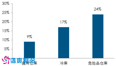 从仓库种类来看,传统仓储业的仓库类型是以通用仓库为主, , 占仓储总面积的 97% 以上。通用仓库通常储存没有特殊存放要求的货物,例如家电、服装和快速消费品等,但是通用仓储的平均利润只有 9%; 冷库和危险品仓储等仓库所占的比例分别大约为 1.3%和 0.8%。虽然冷库和危险品仓储平均利润率可以达到 20%左右,但是对技术和人员的要求也很高,进入壁垒较高。