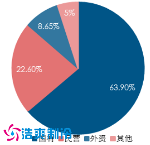 2010年仓储行业普查中显示,我国仓储行业以国有行业为主导。整个行业中,国有及国有控股企业的资产总额 3627.5 亿元,约占总额的 64%,具有绝对优势;而民营和外资企业分别占比 22.6%和 8.65%。资产过亿的大型仓储企业 874 家,其中国有及国有控股企业占到六成以上比例,有 550家。此外,5%的亿元以上企业资产占到全行业总资产的 71.4%,95%的企业资产只占到总资产的 28.6%。由此看出,国有大型仓储企业占据大部分资源。但是近年来,随着物流地产的规模增加和仓储管理的兴起, 我国仓储外资企业和民营企业逐渐获的竞争优势。