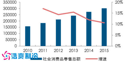2015 年底,我国第三产业对 GDP 的贡献达到 66.4% ,对 GDP 的拉动率在 4.6% 。相比工业增加值(VAI) ,我国消费总额具有明显的增长优势,2015 年我国社会消费品累计总额已达到 200930 亿人民币。据预测,到 2020 年,全球消费品行业的市场规模将高达 7000 亿美元,其中近五成将来自亚太地区,尤其是中国、印度尼西亚、印度、新加坡和泰国市场;仅就中国市场而言,其消费品行业的市场规模预计将增长约 2千亿美元,占整个亚太市场增长的 60%。