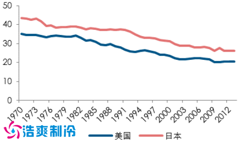 发达国家第二产业占 GDP 比重(%)