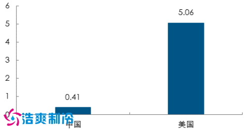 2014 年中美人均仓储面积对比(平方米)
