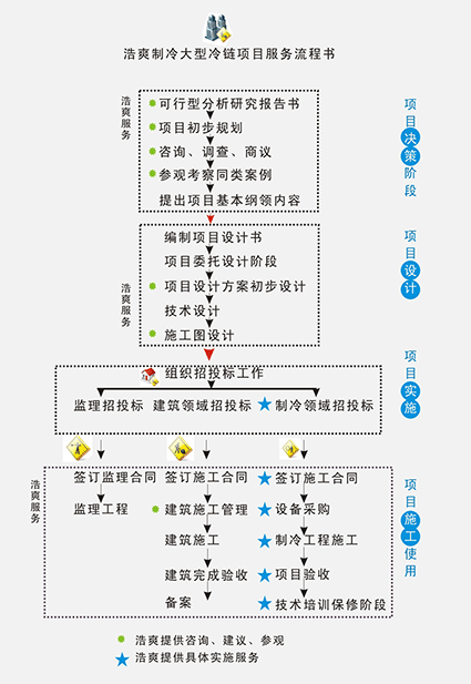 浩爽制冷业务人员前期充分了解业主的项目意图,充分沟通并指导客户规划冷库工程,以求以合理具市场竞争力的方案,设计符合业主及投资方的需求。